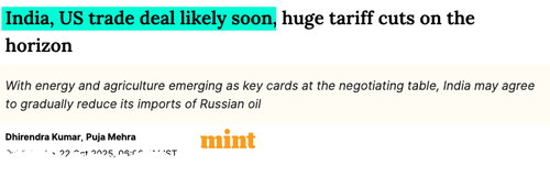 - India-US Trade Deal “Likely Soon,” Could Be Announced At ASEAN Summit: Mintby Tyler Durden on October 22, 2025 at 12:25 pm