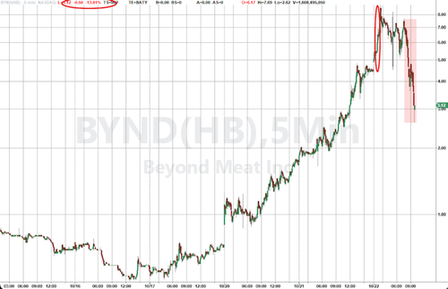 Reddit Army’s Beyond Meat Squeeze Implodes As WallStreetBets Apes Panic Update (Lunchtime Wednesday in New York): After a series of volatility halts, the Reddit-fueled squeeze in Beyond Meat shares has completely reversed, collapsing 68.5% from premarket highs and returning to yesterday’s close. The wild Reddit-fueled day trader squeeze of short hedge funds since last Friday has been nothing short of eye-popping, with gains […]